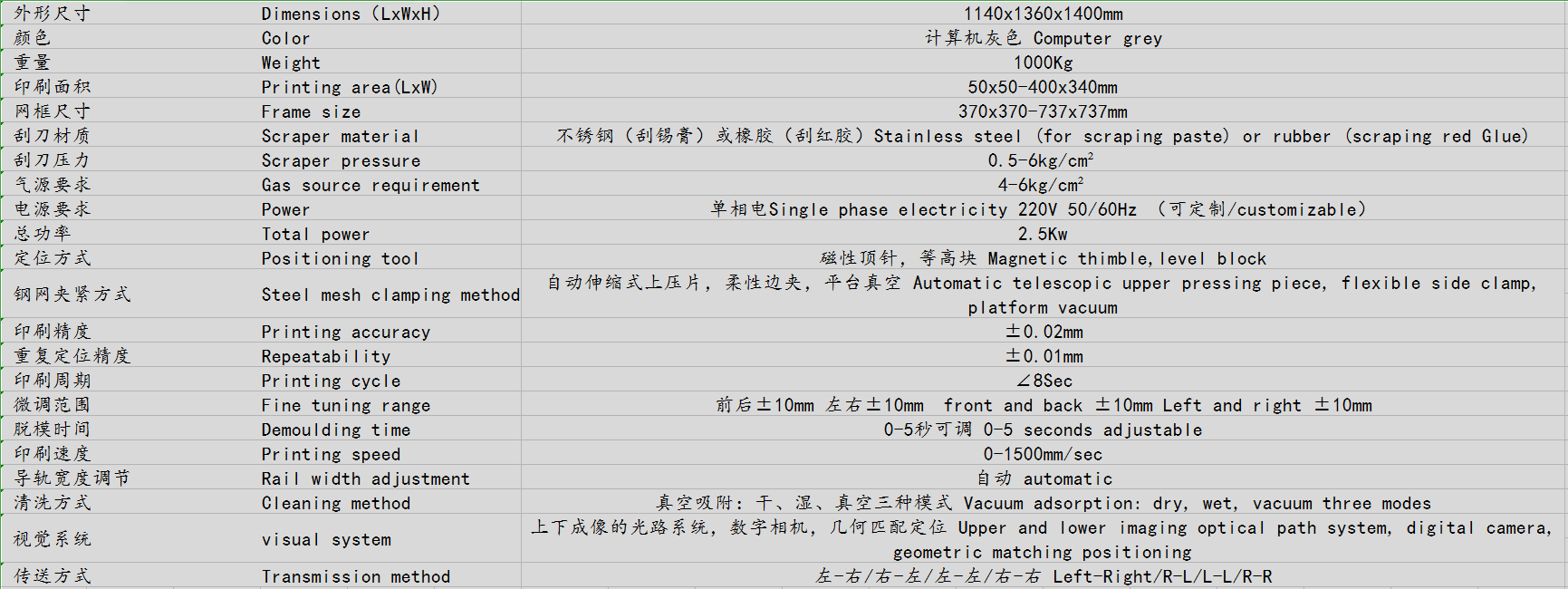 實(shí)現(xiàn)各種尺寸網(wǎng)框的印刷,并可實(shí)現(xiàn)在生產(chǎn)過(guò)程中的快速更換機(jī)種。
