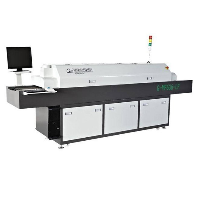 6、工藝自動化:實現全自動精密鉛焊接;整個工藝曲線全部自動控制完成,須人工干預,PCB板靜止放置,振動,可實現微小間距IC的精密焊接,并可完成雙面貼裝焊接工藝。