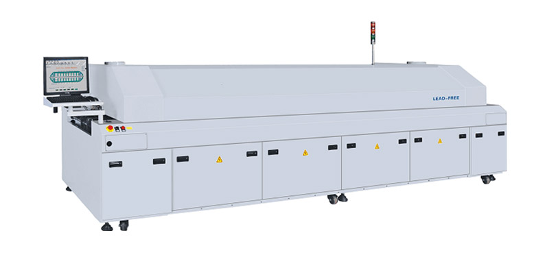 氮氣回流焊氣體采集點至少有一個,高端的氮氣回流焊氣體采集點有三個以上,焊接產品的要求不同對氮氣的需求是有天壤之別的。現在的錫膏制造廠商都在致力于開發在較高含氧量的氣氛中就能進行良好的焊接的免洗焊膏,這樣就可以減少氮氣的消耗。