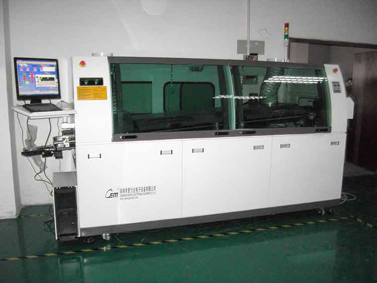 波峰焊是在1956年由英國的Fry,s Metal公司發明的一種印制電路板的焊接方法;所謂的波峰焊接是指將熔融的液態釬料借助泵的作用,在釬料液面形成一特定形狀的釬料波峰,插裝了元器件的PCB置于傳送鏈上,經過某一特定的角度和一定的浸入深度穿過焊料波峰而實現焊點焊接的過程。在國外也有將其稱為群焊、隨機焊或流動焊。