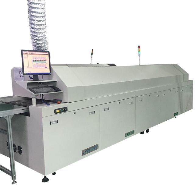 當印刷電路板從機器左側進入時,它通過頂部的第一個加熱器、底部的第一個加熱器、頂部的第二個加熱器、頂部的第三個加熱器、底部的第二個加熱器和頂部的第四個加熱器。PCB進入爐內是一個吸熱過程。它將從室溫緩慢接近環境溫度。然后,當環境溫度變化時,PCB的溫度也會隨著環境溫度的變化而變化,形成溫度曲線。因此,如何使用不同的回流焊加熱器PCB上的溫度變化滿足標準要求的溫度曲線,即控溫精準回流焊溫度曲線的設置。