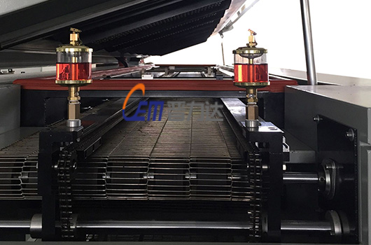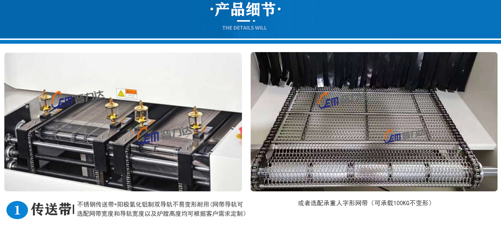 2.采用獨立滾輪結構及托平支撐,結合配套的不銹鋼網帶,運行平穩,速度精確可達±20mm/min